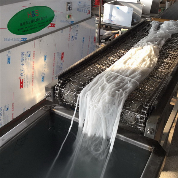 宏盛土豆粉机是一款新型的土豆粉机,把原料一次性加入进料口,装上模具,开动机器后挤压出来的粉进入热水槽中进行煮粉,煮熟的粉由全自动可调速输送机拉出热水槽,经过皮带输送机输送到冷水中进行冷却,冷却后经皮带切断机定长切断,即可进行包装销售。整个流程一气呵成,不需要过多的人工,只需1-2个人即可完成生产。其中煮粉槽和冷却水槽可以根据客户的实际尺寸进行量身定制,也可来图加工。机器采用食品专用不锈钢材质,干净卫生,符合食品生产卫生许可。另可根据客户需要,定制输送切断机。购机免费提供操作技术和工艺配方.